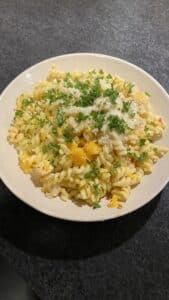 Een herfstige pasta met een heerlijke combinatie van kip en pompoen, diverse smaakmakers en Parmezaanse kaas.